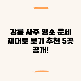 강릉시는 사주를 잘 보는 곳으로 유명한 여러 철학관들이 위치하고 있습니다. 이들 대부분은 무료 팔자 풀이 서비스와 함께 신년운세를 통해 많은 고객들에게 사랑받고 있습니다. 아래에서는 강릉시에서 추천하는 사주 명당 5곳을 정리했습니다.