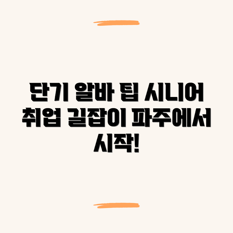 Q: 파주에서 시니어 단기 알바를 찾으려면 어떻게 해야 하나요?